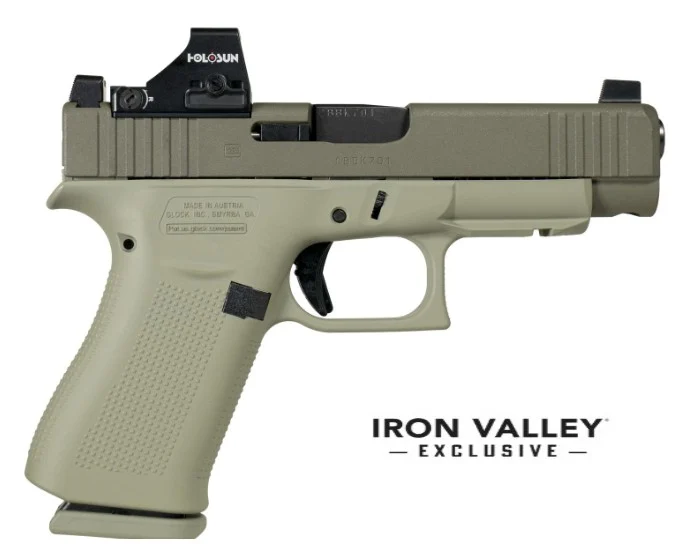 Shark_Coast Tactical, MFG# PA4850204NODGHS, UPC: 810188104601, UOM: EA, GLOCK 48 MOS, 9mm, 4.17″ Barrel, w/Holosun 407K, Debo Green, 10-rd, IVS Exclusive, SCT, SCTHG10, SCTHGALL, HG10, HGALL