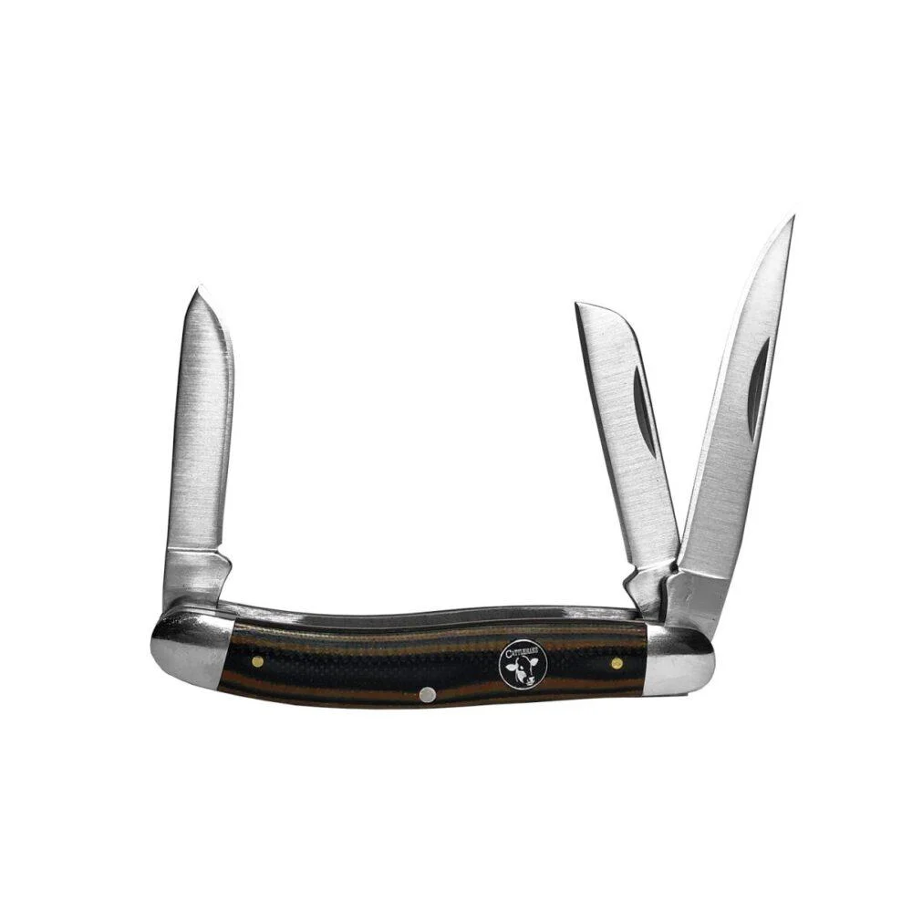 The Cowhand series stockman is a new twist on an old design with highly durable and stylized G10 handles featuring a fresh flash of color. Three blades limitless uses with the Cattleman Stockman.