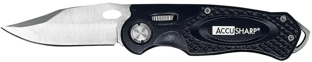 The AccuSharp Sport knife is constructed of anodized aluminum and stainless steel providing years of rust-free use. Features a glass breaker and belt clip ensures that this knife will always be by your side when you need it.