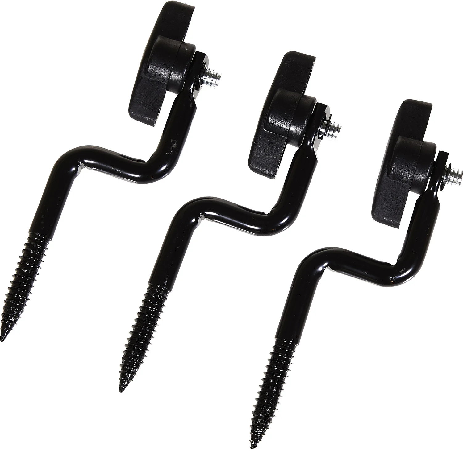 A three-pack of Trail Camera Mounts by Allen, featuring a standard camera mounting threaded thumbscrew. The Tapered screw allows for easy mounting to any tree. Three pack for multiple cameras or for changing a single camera location.