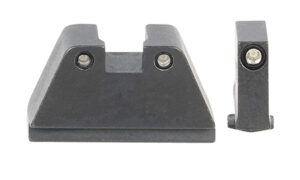 AmeriGlo brings a clear advantage to your shooting experience on and off the range. AmeriGlo Optic Compatible Sight Tall Suppressor Sights set provide a precise, elevated co-witness sight picture for slide-mounted red dot optics and suppressors and serve as reliable back-up sights. This 2XL Tall model has a green tritium front sight with black outline and green tritium rear sight with black outline and black finish. It is compatible with all Glock Gen 1-5 models except: 42,43, & 48. Fits Glock MOS slide. Compatible with Vortex Viper footprint.