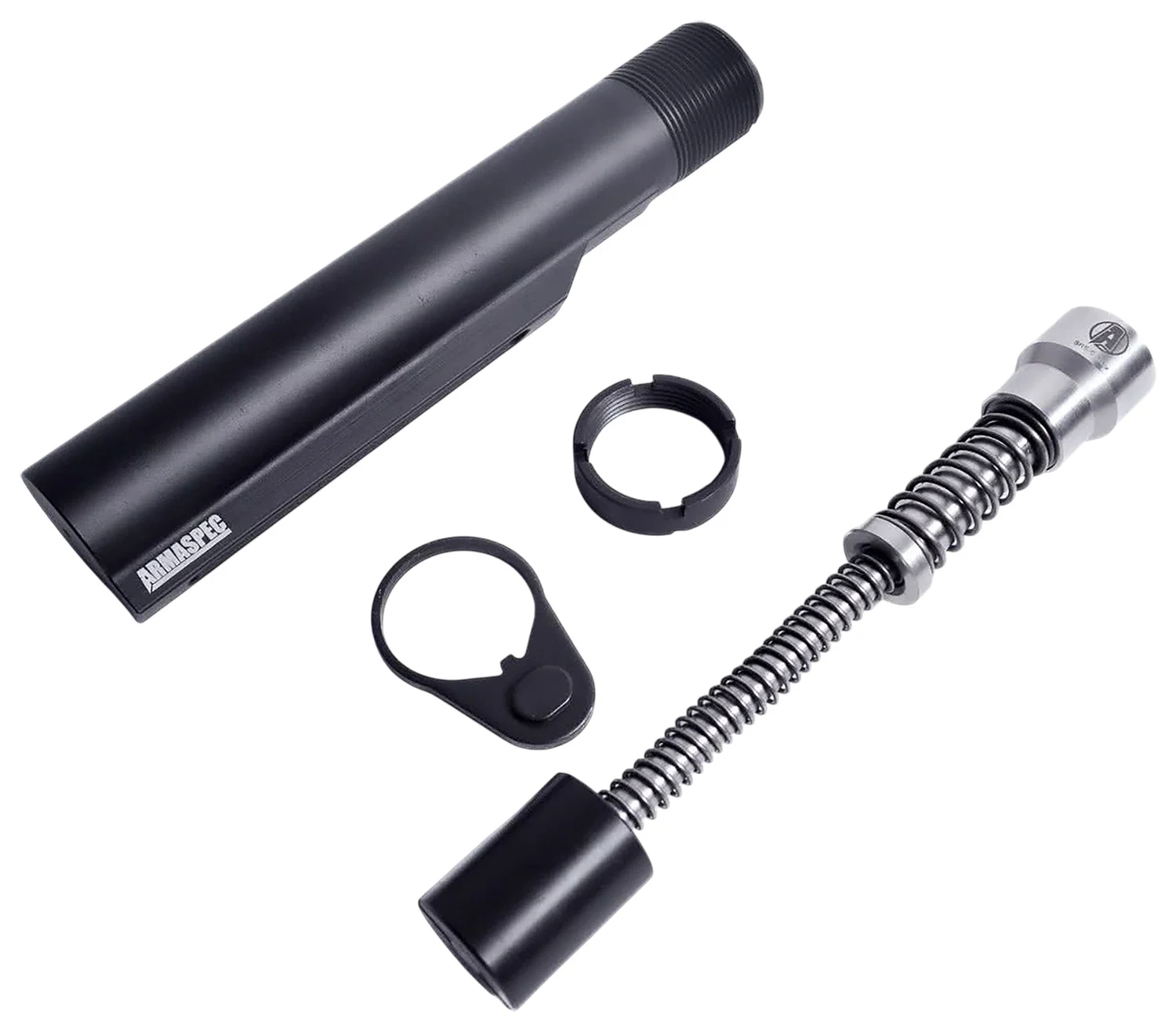The Armaspec enhanced buffer tube kit contains all the necessary parts required to mount a stock assembly on to a lower receiver. The buffer tube kit contains a mil-spec 7075-T6 6 position buffer tube, a steel castle nut and end plate as well as an SRS GEN4 the enhanced multistage recoil buffer system. The Stealth Recoil Spring (SRS) GEN4 is a self-contained multi-stage drop-in replacement for your standard buffer and spring. The SRS is designed to keep the buffer spring from rubbing against the inner wall of the buffer tube providing smooth, quiet operation and the second stage helps reduce the felt recoil significantly.