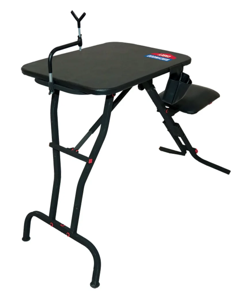 Birchwood Casey MSB100 Ultra Steady Shooting Bench Black Steel, Folding Seat, Pockets & Adjustable Rubber Coated Gun Rest 21″ W x 28″ L