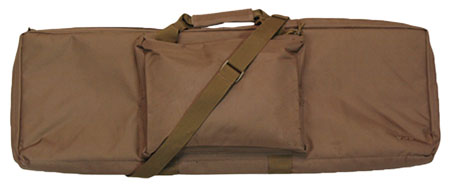 Bob Allen’s 36″ Max-Ops Rectangular Tactical Rifle Case is water resistant. Made of coated poly with poly webbing and has an external magazine storage pocket (10X9). The case has self healing nylon zippers, foam padding and poly webbing carry handles and shoulder strap.