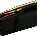 This magazine features a superior rotary design magazine is constructed from a durable lightweight polymer. It feeds cartridges directly in line with the bolt, instead of offset as with traditional leaf-spring magazines for a straight path right into the chamber. The magazine features ergonomic magazine-mounted release.