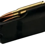 This magazine features a superior rotary design magazine is constructed from a durable lightweight polymer. It feeds cartridges directly in line with the bolt, instead of offset as with traditional leaf-spring magazines for a straight path right into the chamber. The magazine features ergonomic magazine-mounted release.