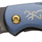 Browning 3220341 Prism 3 EDC Folding 2.38″ Plain Black Oxide 7Cr17MoV SS Blade, Navy w/Brass Accents & Logo Anodized Aluminum Handle, Includes Pocket Clip