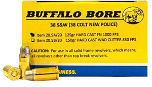 Buffalo Bore Ammunition 205A20 Personal Defense Strictly Business 38S&W 125gr Hard Cast Flat Nose 20 Per Box/12 Case