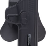 Bulldog’s Rapid Release Holster is suitable for civilian, duty and military use. The holster is made of durable, high-tech polymer material with gun-specific design that is fully adjustable to multiple draw positions. Its specially designed locking mechanism provides safe and secure “Level II” retention while offering a one finger “Quick Draw” release.