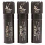 Carlson’s Waterfowl Choke Tubes are manufactured from 1704 stainless steel and designed to throw tighter and denser patterns than conventional choke tubes. These choke tubes feature a 25% longer parallel section in the choke, thus throwing more consistent patterns. Each choke tube is knurled on the end to allow for quick and easy removal. Each choke tube has the constriction and size laser marked on the end and body for easy reference. Steel shot may be used through these choke tubes with exceptional results. *Note- Do not shoot steel shot larger than BB or any steel load faster than 1550 FPS through the Full or Extra Full Constrictions. Slugs, sabots, and rifled slugs are not to be used in any choke constriction tighter than Improved Cylinder. Remember to pattern your shotgun choke tube with the specific shotshell load you are going to be using. Different brands of ammunition throw different patterns from the same choke tube.