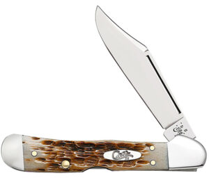 Case 00133 CopperLock Mini 2.72″ Folding Clip Point Plain Mirror Polished Tru-Sharp SS Blade/Peach Seed Jigged Amber Bone Handle