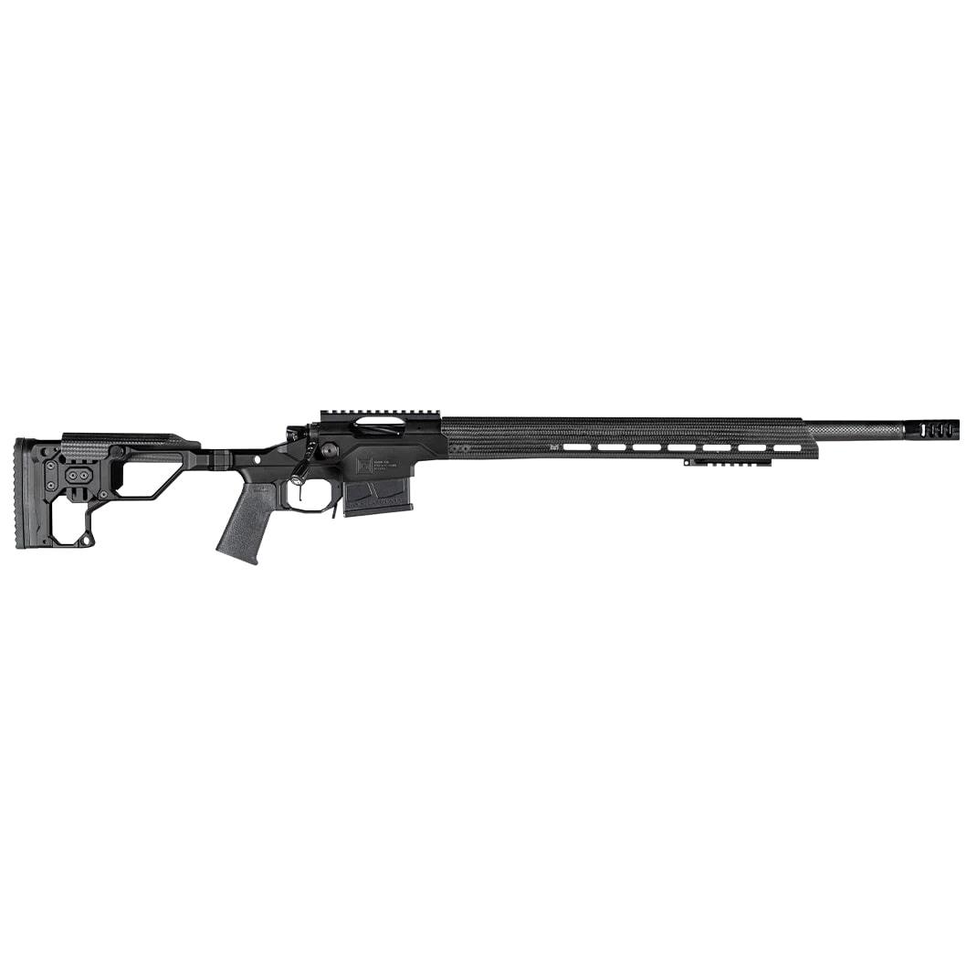 The Modern Precision Rifle is an ultra-lightweight chassis rifle designed to break with tradition. Beyond the folding stock the complete package is well equipped with a target contour Christensen Arms carbon fiber barrel carbon fiber comb free-floating carbon fiber handguard and 20 MOA rail. The action and stainless steel side-baffle muzzle brake are finished in Black Nitride for a sleek look. The Modern Precision Rifle weighs in starting at 6.9 pounds and is backed by the Christensen Arms Sub-MOA Guarantee.