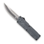 CobraTec’s Lightweight OTF (out the front) knife has a great feel and excellent action. The knife includes a pocket clip and a nylon sheath. It features a 3.25″ D2 Steel blade and 4.5″ high-grade aluminum alloy handle.