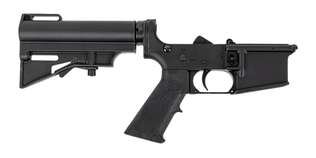 The forged lowers are made using 7075-T6 aluminum and are marked “MULTI” for caliber. Finish is hardcoat anodize.. Mil-spec diameter 7075-T6 buffer tube is hardcoat anodized, has 6 adjustment positions, is fitted with a DPMS CAR-15 injection molded pistol brace. The fire control group is a DPMS Retro black Oxide, single-stage assembly.