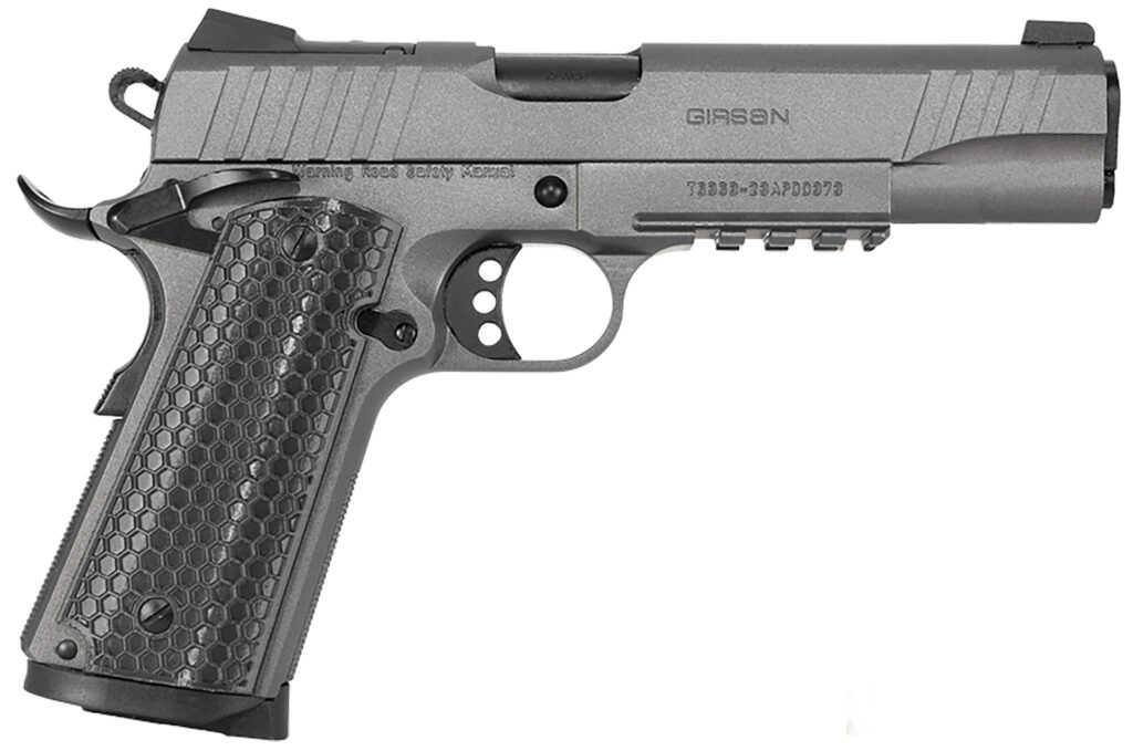 Girsan 391149 MC1911 S Influencer Full Size 38 Super 9+1 5″ Black Steel Barrel, Tungsten Gray Cerakote Optic Ready/Serrated Steel Slide & Frame w/Picatinny Rail & Beavertail, Gray Polymer Grip