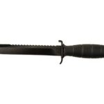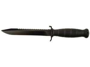 This knife can be used for cutting opening bottles or even as a weapon. The handle is made from black polymer giving the knife a smart look. As part of the price is a sheath also made from black polymer.