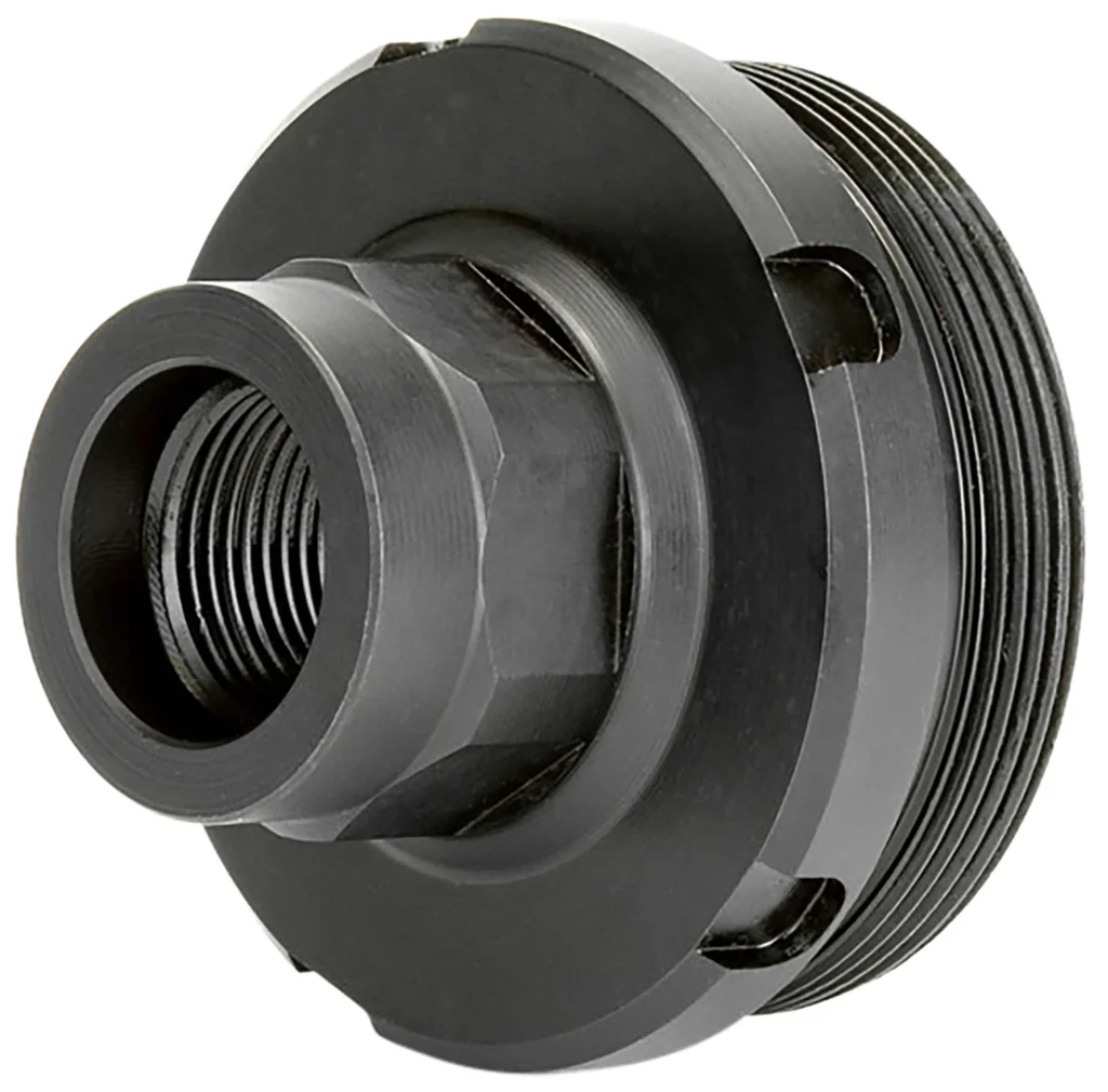 The 1.375×24 HUB Direct Thread Adapter provides a direct thread interface for the Griffin Bushwhacker, OMEGA, NOMAD, & other 1.375×24 threaded suppressors. Wrench flats make it equally simple to attach or remove from the suppressor tube body or firearm’s muzzle threads. No proprietary tools required. Available in 1/2×28 and 5/8×24. It is important to remember that each host firearm must be checked for baffle alignment via visual inspection before firing.