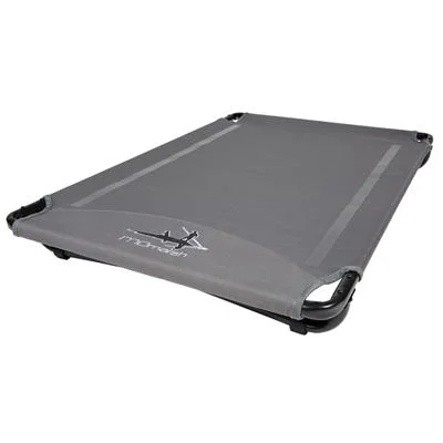 Designed to fit inside standard medium and large kennels the MOmarsh kennel cot is a new twist on canine kennel comfort. Unlike kennel pads the Duramesh fabric and slightly elevated platform allow liquids to drain and keep your partner high and dry while still providing comfort from the the kennel floor. It can be used double duty as a climb and training tool and with its sleek look and high thread count embroider it easily lends itself to use on the living room floor. Easy to clean and extremely durable make this a must have for any dog enthusiast. Constructed of Duramesh material with heat sealed seams and powder coated steel frame the MOmarsh kennel cot will take years of abuse. Large measures 33” long x 22” wide.