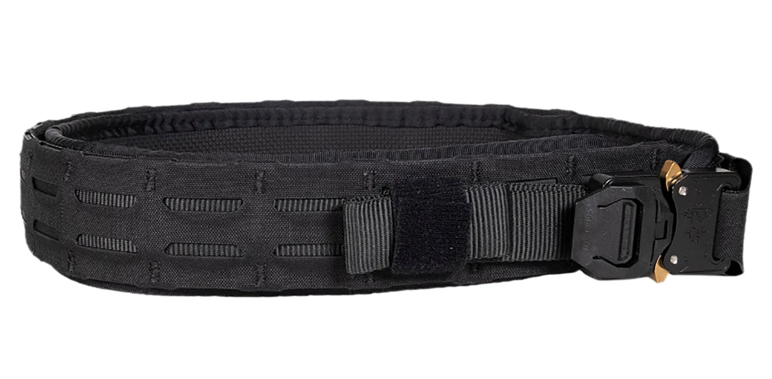 The Operator belt w/Micro Grip belt panel for an enhanced comfort option. Features Cobra buckle with Snakebite fitting to secure webbing tail and prevent possible snagging; 1″ Mil-Spec 5625 tubular nylon webbing with water-repellant coating to withstand the elements; Thermoplastic core provides long-term rigidity without adding weight; Laser-cut MOLLE slits (abbreviated 3-row pattern) allow pouches to mount with MOLLE, belt loops or OneWrap straps. Compatible with virtually all holster and pouch mounting systems.