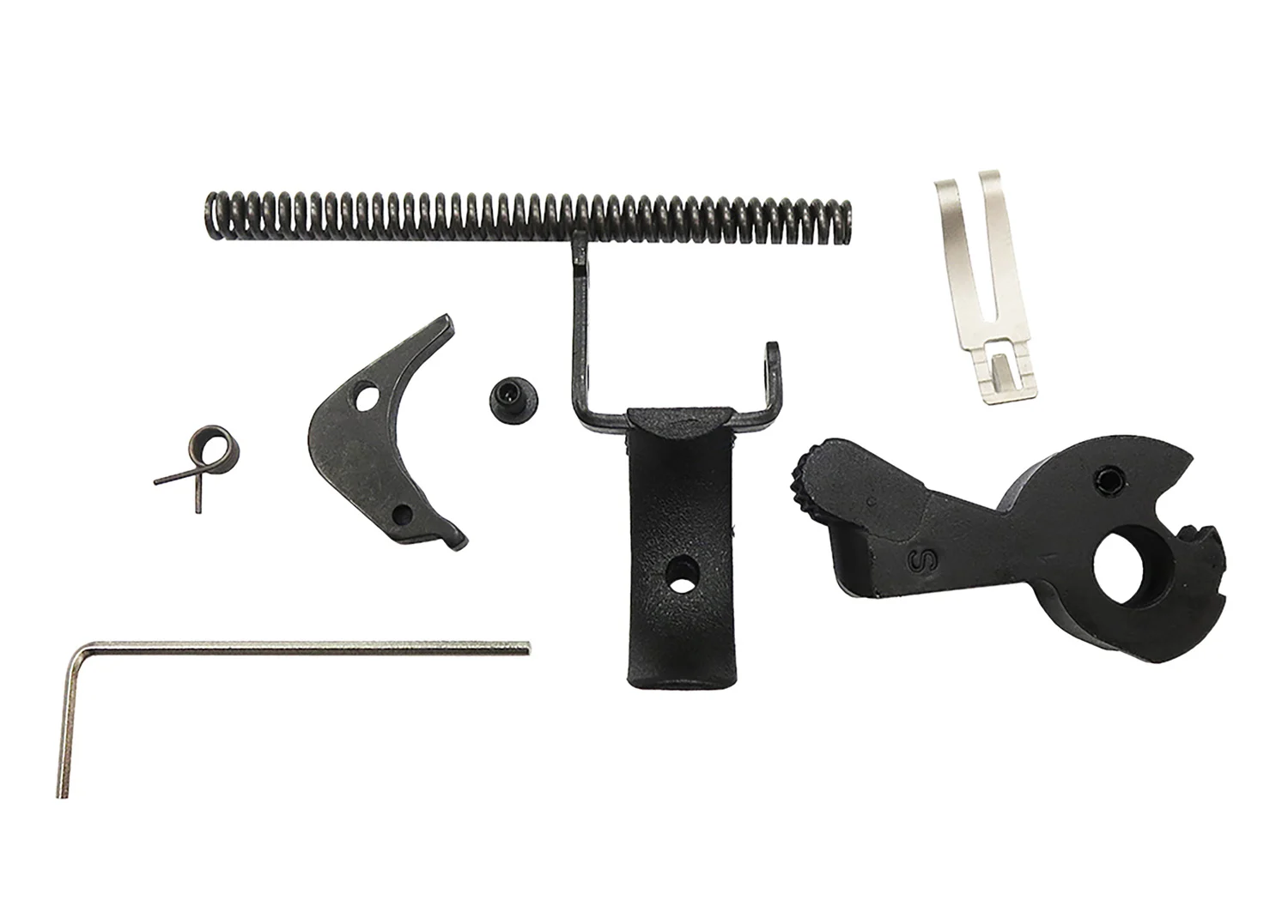 Includes: Match hammer, Match hammer spring, Match trigger with over-travel stop & tool, Match trigger return spring, Match nickel flat/sear spring, Match New style sear catch