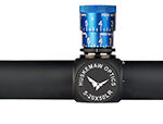 Huskemaw Optics Blue Diamond riflescope incorporates the ballistic compensating turret with the simple, yet powerful wind hold HuntSmart reticle (U.S. patent 8365455). Featuring patented RFBC turret system with Huntsmart Reticle Glass etched second focal plane reticle protected between two layers of glass; fast-focus eyepiece; grooved and bedded lenses with proprietary adhesive for maximum recoil tolerance; TrueBC drop compensation; high-density lens coatings; titanium turret springs for unequalled tracking; adjustable zero index ring and adjustable parallax knob.
