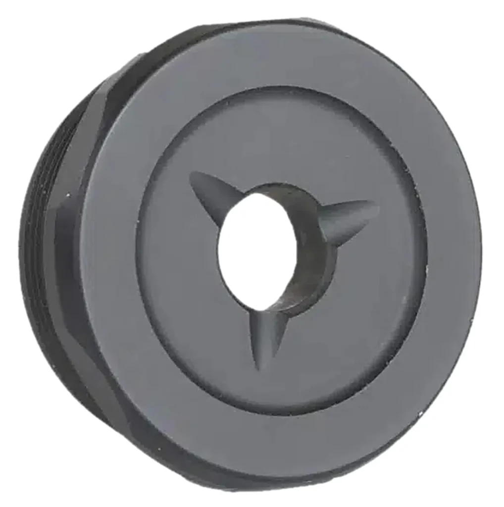 The shortest End Cap we offer, the Flash Reducer is the standard, flat End Cap for most JK Armament suppressors. Three small, concave channels provide good looks and some flash reduction.
