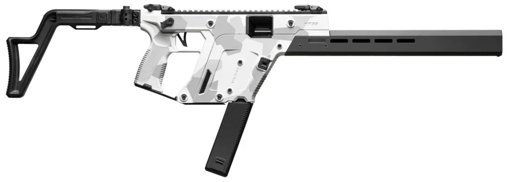 Kriss USA KV453CAD00 Vector CRB Gen3 45 ACP 30+1 16″ Black Nitride Threaded Barrel, Arctic Delta Cerakote Receiver w/Picatinny Rail, M-LOK Handguard, Adjustable Folding Black Stock, White Polymer Grip