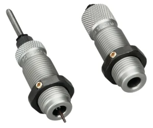 Lee 44 Special / 44 Magnum Pistol Breech Lock 3-Die Set includes colored spline drive breech bushings for easy die identification Carbide Full Length Sizing Die Bullet Seating Die Powder Thru Expanding Die Universal Shell Holder Powder Dipper and Instructions/Load Data.