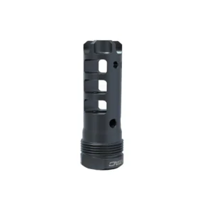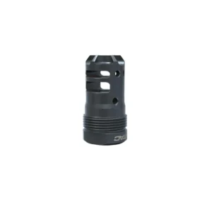 2.25 total length takes 14.5 barrels to 16.1 for legal rifle barrel length requirements. All critical alignment features machined in one set up. Compatible with common .900-24 silencer mounts like the Q Plan-B and Rearden MFG Atlas. .30 caliber bore. 13/16 rear hex for easy installation and removal. CNC machined from 17-4 PH stainless steel. Heat treated to H900 condition. Substantial flash reduction over OEM part. Designed to serve as sacrificial blast baffle. Square shoulder. 360 degree port orientation-no shims required. 2.7 ounces, 3/32 pin compatible