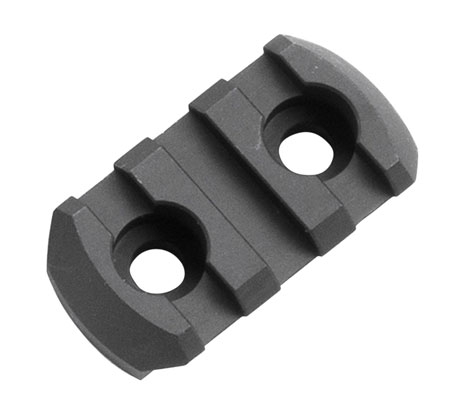 Made in the USA and designed for use with all M-LOK compatible Hand Guards and Forends, M-LOK Aluminum Rail Sections allow the attachment of various 1913 Picatinny spec rail-mounted accessories such as lights, vertical grips, etc. Machined from mil-spec-anodized aluminum, M-LOK Rail Sections also feature beveled ends to reduce snagging and eliminate sharp corners and edges. All hardware necessary for attachment directly to M-LOK Slots on either aluminum or polymer hand guards and forends is included. 3 Slots, a max overall length of 1.6″.