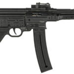 The BLS Mauser STG-44 is a historically accurate recreation of the iconic WW2 rifle. Featuring fully pressed metal construction, natural wood stock, adjustable rear sight, captive breech assembly, muzzle velocity 38 grains @ 1200 fps, 6 rifling grooves and a twist rate of 1:16″.
