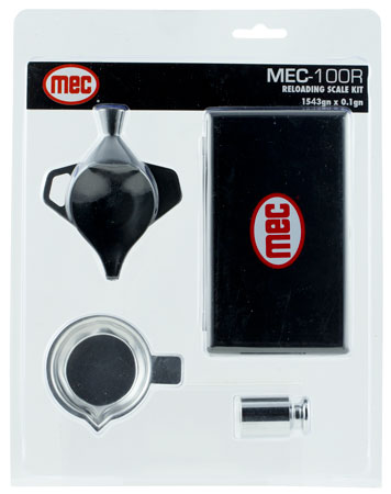 Measure your powder precisely with the MEC scale kit. Kit contains scale, pan, and 100g calibration weight.