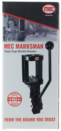 Introducing the MEC Marksman, a single stage metallic reloader. Reload with the ultimate precision tool. The MEC Marksman is made of ductile cast iron for strength and durability and there patent-pending shell holder self-centers each cartridge. The ram provides smoothness and accuracy for every load. Compatible with all 7/8-14 thread dies to change calibers quickly. Reload .22 Hornet to .416 Rigby with one convenient machine.