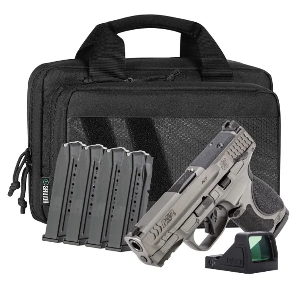 Smith & Wesson, MFG# 14804, UPC: 022188906103, UOM: EA, M&P9 M2.0 Metal Compact Bundle, 9mm, 3.6″ Barrel, MTS, OR, RFX11, SS Bag, Grey, Black, (5) 15-rd, SMIT, SMITHG10, SMITHGALL, HG10, HGALL