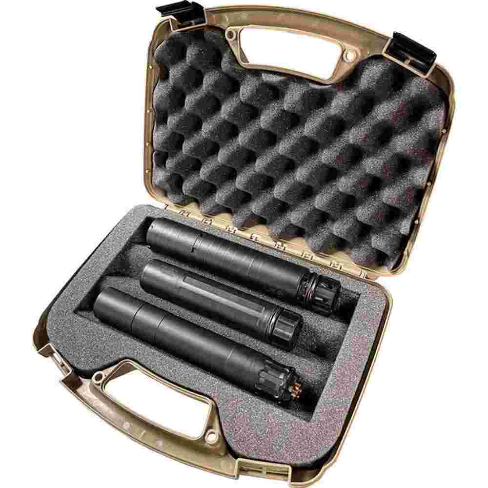 Inside cooled suppressors are safeguarded by high quality foam padding that keeps them firmly in place while additional storage space beneath the padding provides a convenient location for storing Form 4s or other essential documents. The case accommodates both large and small suppressors making it versatile for a variety of firearms SC3