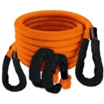 This high-strength kinetic recovery rope is designed to safely and efficiently recover stuck vehicles in snow sand or mud. With 30% more stretch than standard tow straps it reduces the harsh jolt during recovery while storing four times more energy. Made from 100% double-braided nylon with a protective polyester sleeve it offers superior durability and resistance to water sand and mud. The 7/8″ rope comes with two ½” shackles ensuring secure attachment with D-ring or synthetic soft shackles. Rated for a maximum breaking strength of 24200 lbs this rope is a must-have for off-road enthusiasts.