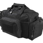 This bag is a smaller range bag that is compact while being able to hold a lot of gear. The range bag will easily carry a couple pistols, holster, several magazines & pouches, ammo, eye & hearing protection, and other essential range gear. This bag has a large top opening zippered lid for easy access to your gear with heavy duty zippers. It also comes with metal zippers with metal loops for attaching a small pad lock (not included) to secure your gear and for those jurisdictions that require a locked container for your firearm when being transported to a range.