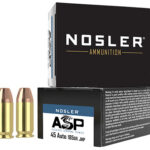 Nosler’s Assured Stopping Power (ASP) ammunition line combines match-grade accuracy with a reliable, effective, hollow-point bullet. Evolving from the Match Grade ammunition line, ASP ammunition is loaded with the same quality and attention to detail that Match Grade users have come to expect, with the addition of an expanding hollow-point bullet designed specifically for duty and defensive use. Loaded in Nosler head-stamped brass, and utilizing quality components throughout, the ASP ammunition can be relied upon to perform in a wide variety of applications and ranges. Equally, at home on duty or in a defensive role, Law Enforcement professionals and civilians alike can rest assured that ASP ammunition will perform when needed.