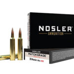 Nosler Match Grade Ammunition consists of Nosler’s precisely-designed Custom Competition bullet along with Nosler brass. Because of Nosler’s unsurpassed quality standards, each piece of brass is checked for correct length, neck sized, chamfered, and trued and flash holes are checked for proper alignment. To further ensure Nosler’s reputation for quality and consistency, powder charges are meticulously weighed and finished rounds are visually inspected and polished.