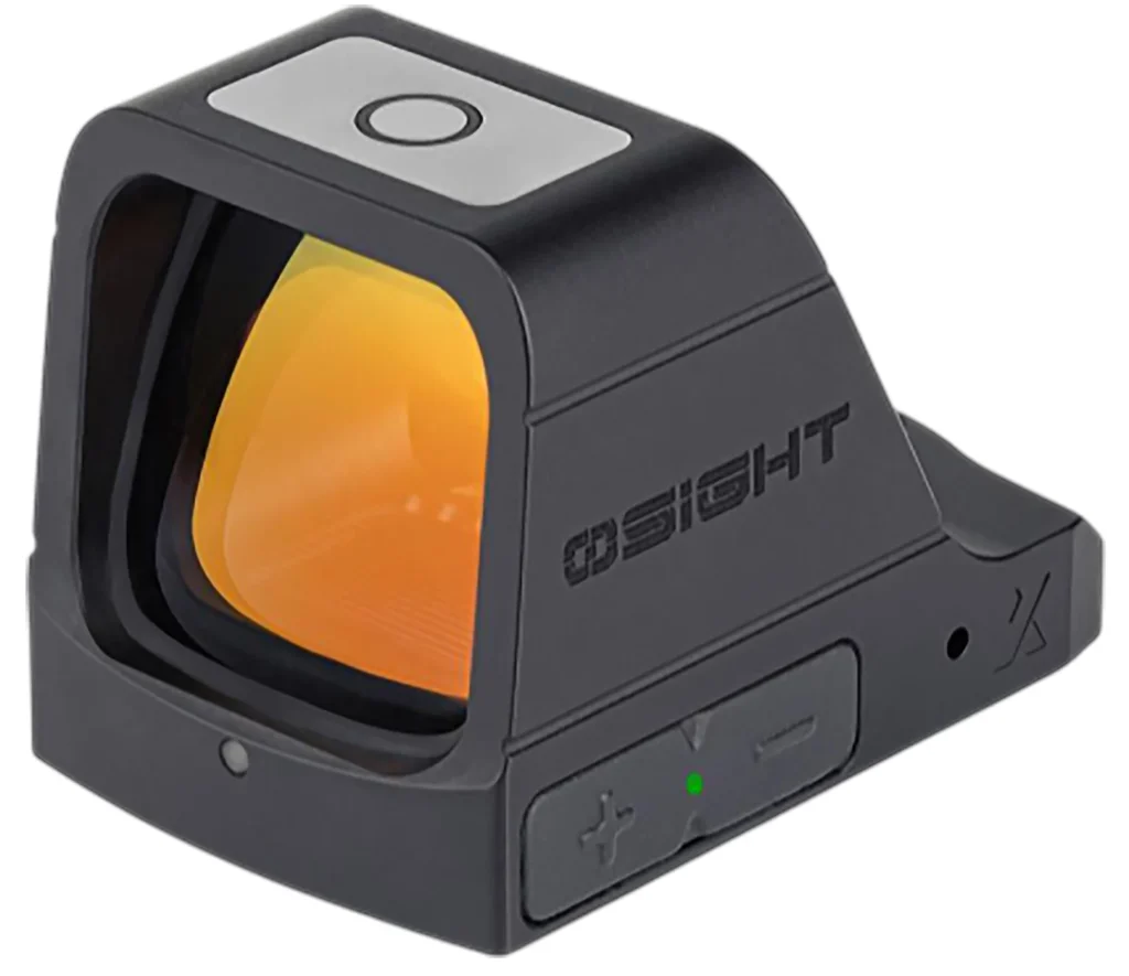 The Osight X features shake awake; auto sensing; multiple reticle system- 3 MOA Dot and 32 MOA circle; motion sensor off/on; three adjustable brightness settings: a default level, an extra bright level, and a dimmer level, users can adjust and select the ideal brightness that aligns with their preferences; energy saving function and common RMR footprint.