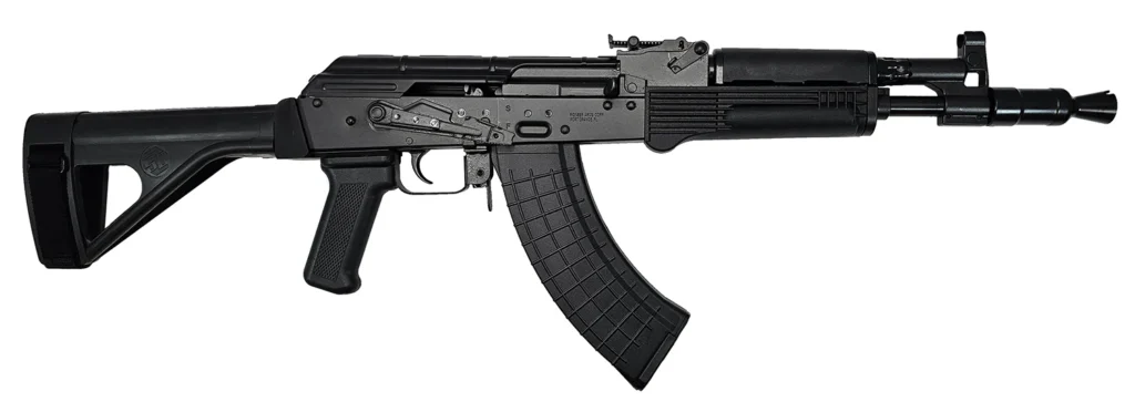 Using the Licensed Kalashnikov AK blueprints, Pioneer Arms AK-style firearms are true to the original design. The Hellpup series of AK pistols feature an 11.73″ barrel with 14x1LH thread pitch; a forged front trunnion; 90 degree gas block; enhanced safety selector; traditional AK optics side rail and an SB Tactical SOB47 Pistol Brace. Includes two 30rd magazines.