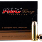PMC’s Bronze Handgun is manufactured with the same quality and dependability built into the Starfire ammunition. All PMC cartridges must pass through the rigorous inspection of the electronic powder check station. If the propellant in any cartridge varies by as little as two-tenths of one grain, the system stops, and that cartridge is discarded.