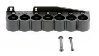 This (7) RD 12 gauge shell carrier mounts to the side of the receiver on Remington 870® shotguns. Precision molded polymer shell carrier and aluminum mounting plate securely hold 7 additional rounds for fast tactical reloads of the magazine tube. A patent pending retention adjustment system has been integrated and can adjust individual tension for each shell allowing the user to fine tune the shell carrier for specific ammunition and the level of retention required. A rubber molded gasket fits between the mount and the receiver to protect the firearms finish. Shell carrier will not contact or interfere with the pump action forend when used with military length forends. All hardware is included.