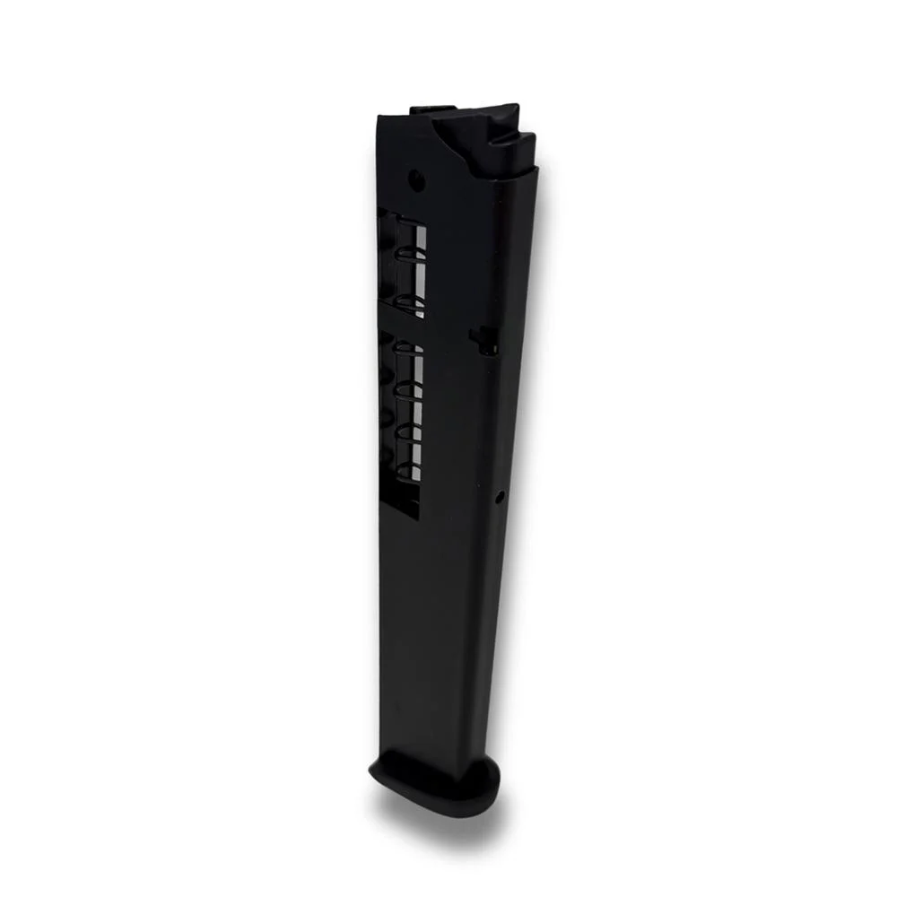 - Magazine body constructed of heat treated steel with black oxide finish