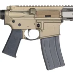 The SUGAR WEASEL a 7″ pistol chambered in 300 BLK. Its built on clear anodized M-16 spec receiver set (no forward assist) and features the same fast-twist barrel, Cherry Bomb muzzle brake, adjustable gas block and 6″ M-LOK handguard as the higher priced Honey Badger. It uses a 6-position receiver extension that houses a carbine length action spring and buffer, and is topped off with a custom grey SB Tactical SBA3 Pistol Stabilizing Brace (PSB).