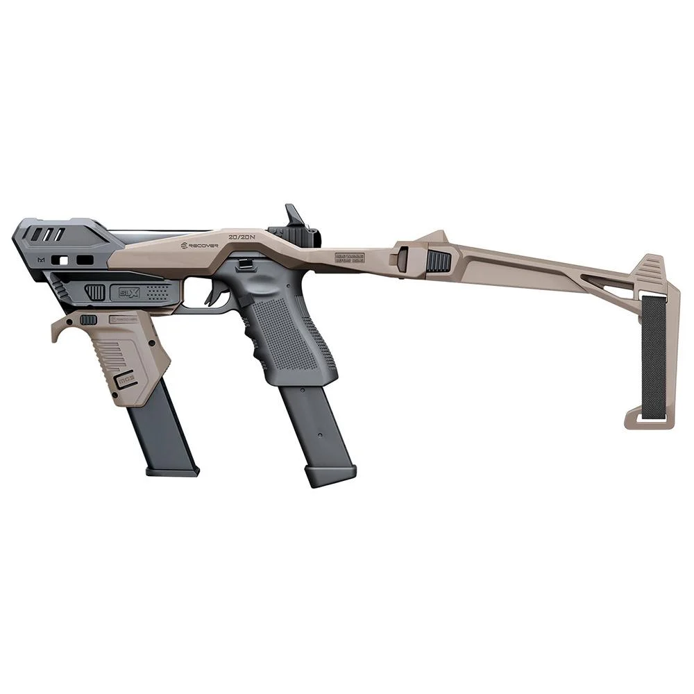 Enhance the stability and performance of your Glock with the Recover Tactical 20/20N Pistol Brace Stabilizer Kit. This innovative kit is compatible with all 9mm and .357 Double Stack Gen 1-5 Glock pistols including popular models like the Glock 26 and Glock 27 as well as all Double Stack Gen 1-4 SW40 Glocks. Designed for easy installation the kit provides improved accuracy and control without the need for NFA registration when you select the TFA Kit version. Available in brace or stock options (with NFA rules applicable) this high-quality stabilizer kit is perfect for shooters looking to get the most out of their Glock. Rated 4.96 out of 5 stars it’s a proven favorite among Glock owners! Covered by US Patents US11306996B2 and US Patent 11592262