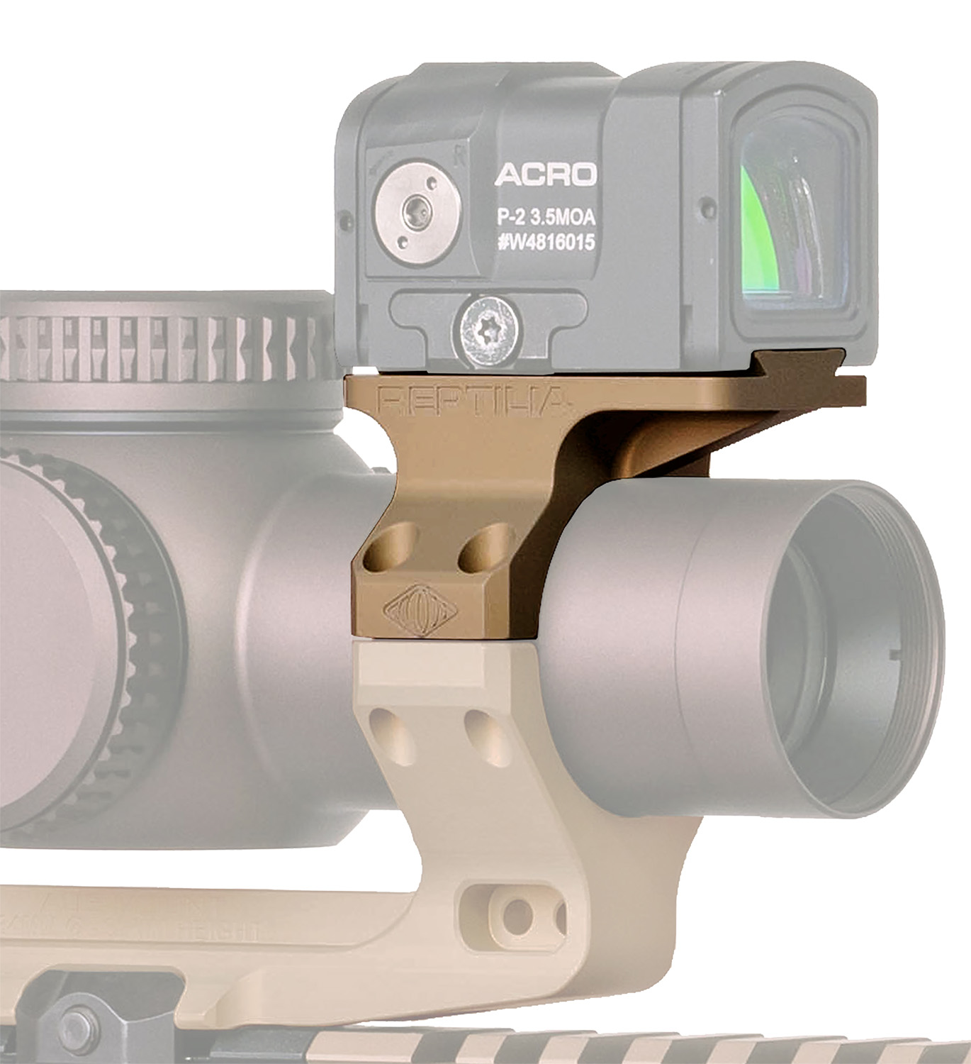 Introducing the Reptilia ROF-90 for ACRO/MPS in 34mm. The ROF-90 is a drop-in upgrade for the Reptilia AUS Mount or Geissele Super Precision 34mm magnified optic mounts. The ROF-90 was adds options for close-in target engagement and passive aiming with night vision. The ROF-90 for a Aimpoint ACRO or Steiner MPS at 90 (12:00) to add a close-range optic to your magnified scope. Additionally, the ACRO or MPS can be zeroed for use with use with subsonic cartridges such as 300 AAC Blackout, while allocating the magnified optic for use with supersonic ammunition.