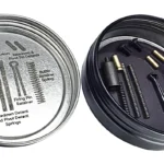 The parts of the Oh S#IT Kit are housed in a tin with a magnetic base that keeps all the parts sorted. On the inside of the lid is a to-scale image of all the included parts so you can easily identify each spare part. From screws to pins to detents, the RISE Oh S#IT Kit contains spare parts that can be impossible to find if dropped. This parts kit includes: Buffer Retainer (x1), Buffer Retainer Spring (x1), Anti-Walk Pin Screws (x2), Takedown & Pivot Pins Detents (x2), Takedown & Pivot Pins Springs (x2), Safety Selector Detent (x1), Safety Selector Spring (x1), Firing Pin Retainer (x1)