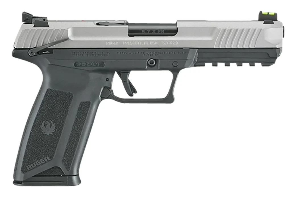 Ruger 16408 Ruger-5.7 Exclusive Finish 5.7x28mm 20+1 4.94″ Black Nitride Steel Barrel, Savage Cerakote Serrated Steel Slide, Black Polymer Frame w/Picatinny Rail, Black Polymer Grip, Right Hand