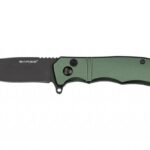 This army green tactical folder commands attention. Featuring a ball bearing pivot system allowing the 3″ black coated 440 stainless steel blade to glide open. When engaged the blade is reinforced with a turbo lock for added protection. Simply push the button to release the lock and fold the blade. Measuring 4″ when closed to fit comfortably in the pocket while also including a pocket clip for convenience. You will be saluting the craftsmanship of this knife.